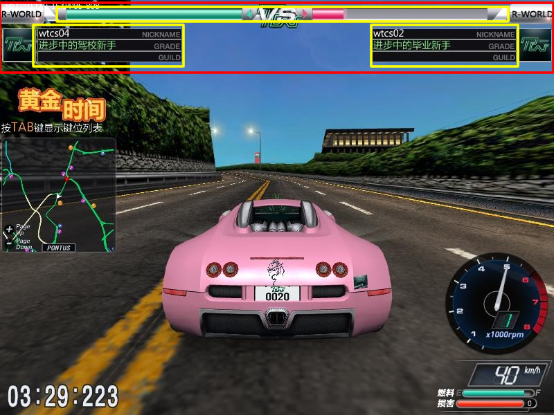 | 5、友谊对战胜负判定 | 比赛开始时同一起点出发。开始后的方向根据最先起跑的车辆定,在后面的车辆要一直跟着领先的车辆(领先的车辆想跑哪里都行)。屏幕上方有两条水柱,哪条水柱最先减完就哪一方输。如果在你自己的水柱还没减完之前超车后,先后顺序就会更改。比赛继续进行,直至分出输赢。 | ![]() |